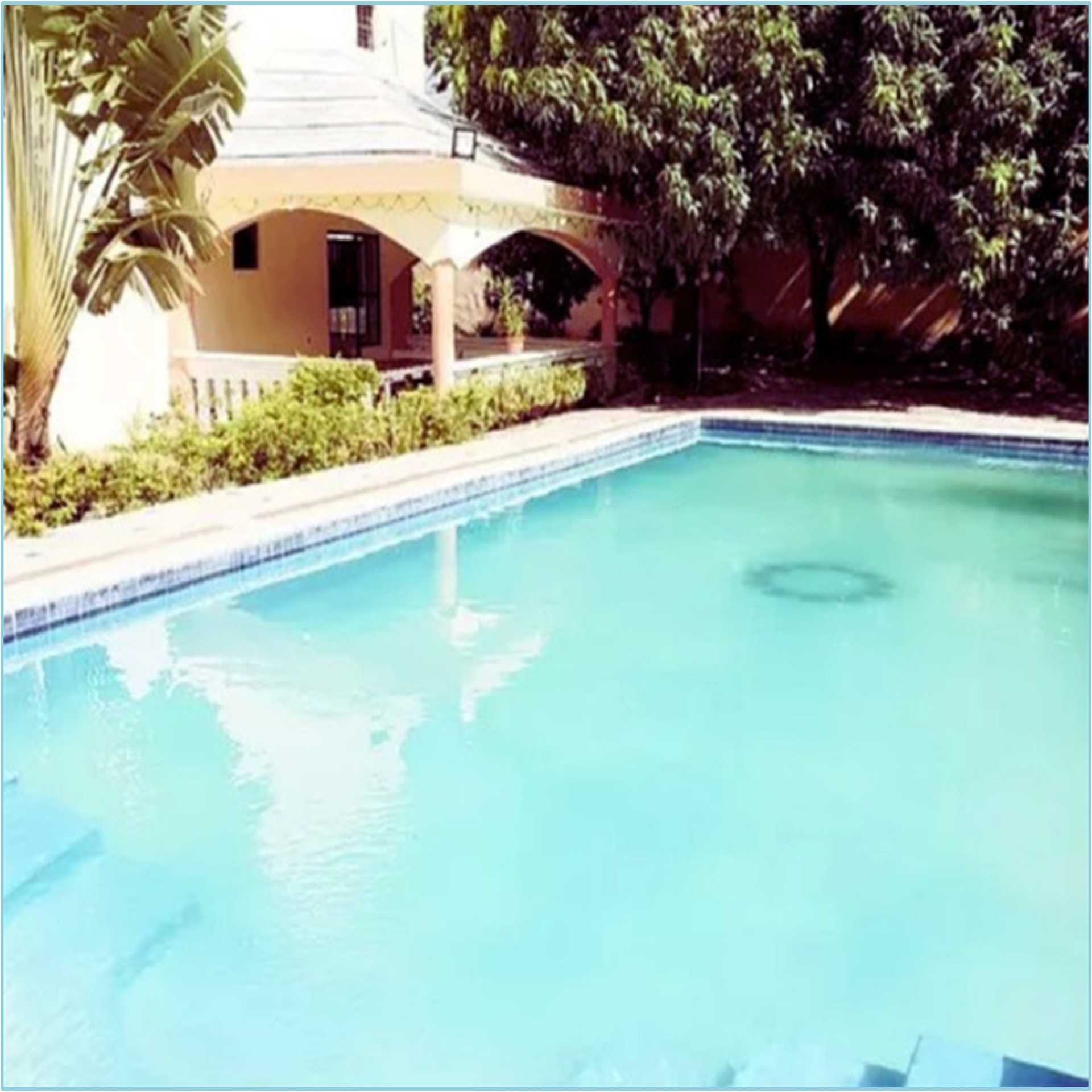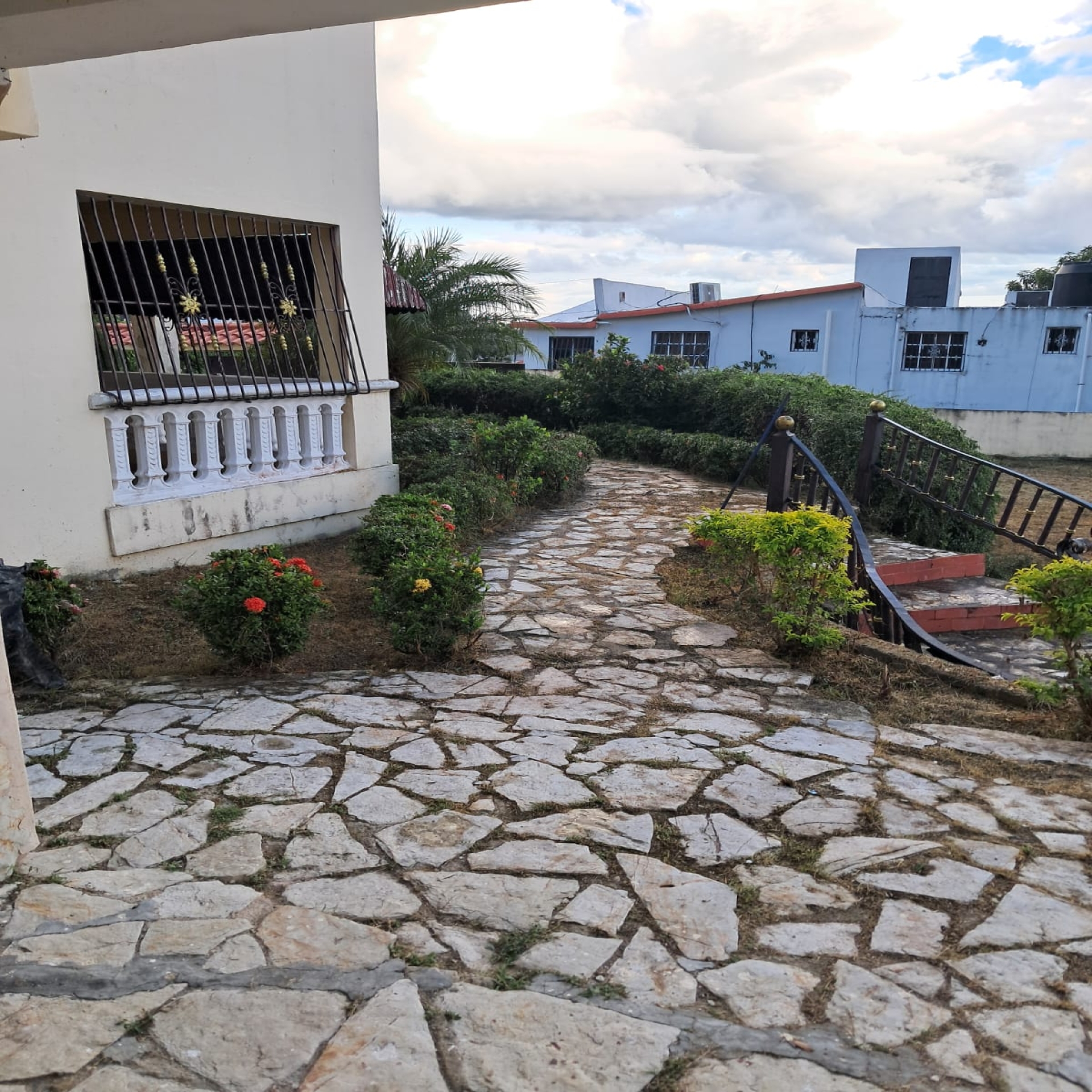 Amplio jardín con piscina, cercado completo con altas paredes de Block. Zona tranquila y de buenos vecinos, con todos los servicios disponibles.